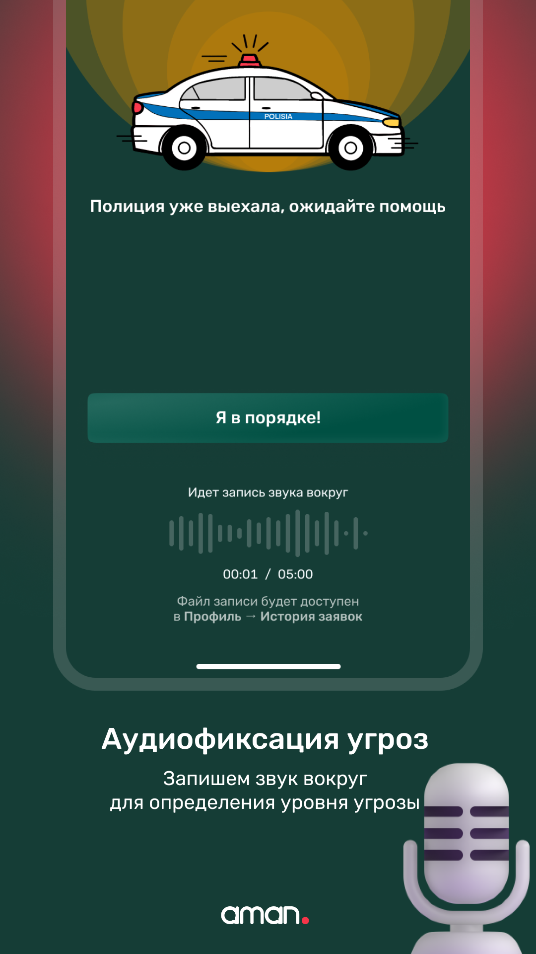 Если вы разделяете наши ценности и хотите обезопасить себя и близких, скачайте приложение AMAN и будьте уверены, что помощь всегда на расстоянии одного касания.